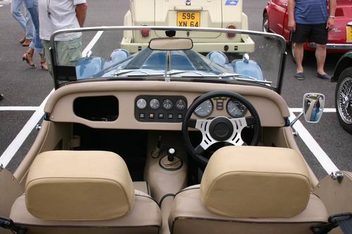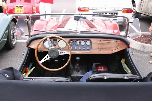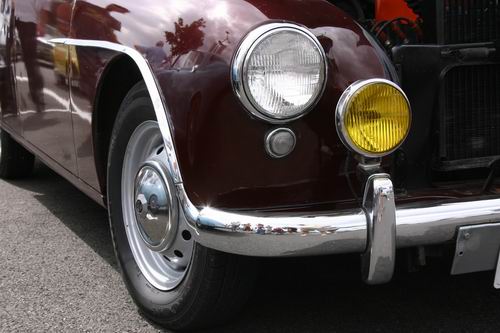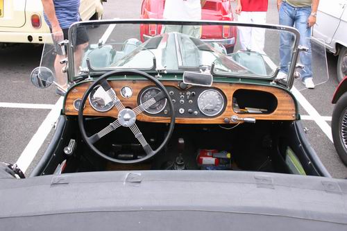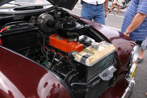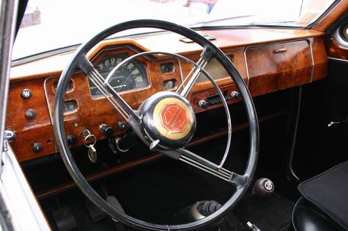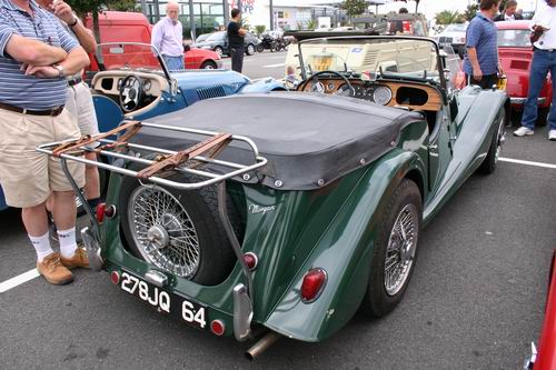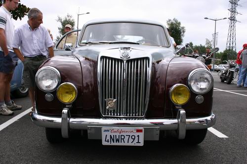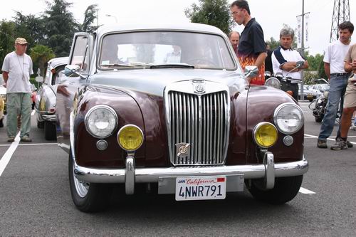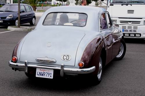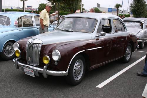 Nous avons eu le plaisir de découvrir un MG Z.A. Magnette de 1953. On avait presque oublié que MG avait fabriqué aussi des berlines 4 portes. L'appellation "Magnette" était réservée en principe aux modèles sportifs et surtout décapotables de la marque, mais la première Magnette était bel et bien fermée. La ZA est une interprétation du style "ponton", très en vogue en début es années 50. Elle possède un moteur d'origine Austin de 1489 cm3, culbuté, soupape en tête développant 60 ch à 4600tr/mn. Seulement 12754 véhicules furent fabriqués. Ce modèle à la particularité d'être peint en deux tons comme les modèles Z.B. Varitone apparut en 1958, mais il s'agit bien d'une Z.A. reconnaissable à sa baguette latérale se raccrochant par une flamme au pare-chocs avant.